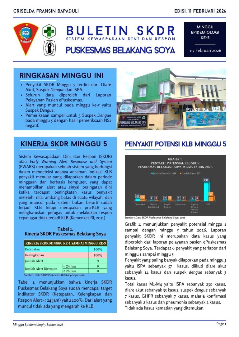 Waspada Dini! Update Buletin SKDR Puskesmas Belakang Soya Minggu Ke-5 (1-7 Februari 2026) ⚠️