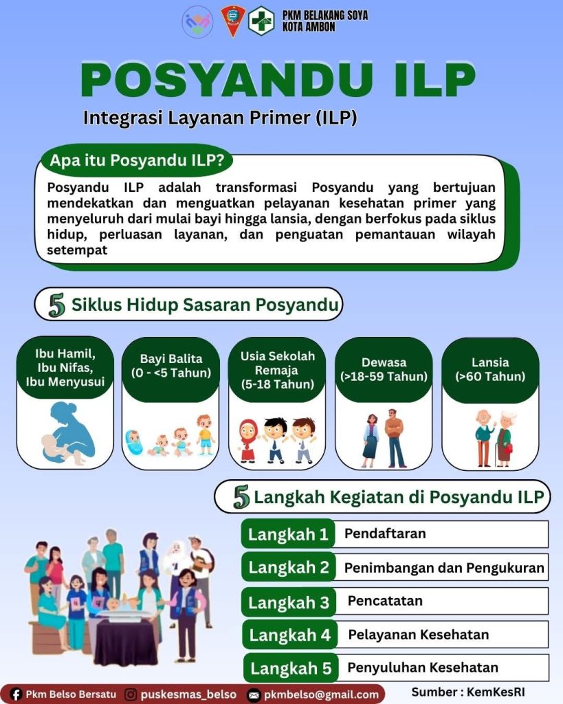 Posyandu Integrasi Layanan Primer (ILP) adalah sebuah program dari Kementerian Kesehatan (Kemenkes) RI yang bertujuan mentransformasi Posyandu menjadi layanan kesehatan yang melayani seluruh siklus hidup, dari bayi hingga lansia, bukan hanya ibu hamil dan balita. ILP adalah bagian dari program besar Kemenkes untuk memperkuat sistem kesehatan primer di tingkat desa dan kelurahan, guna menyediakan layanan kesehatan yang lebih komprehensif, mudah diakses, dan terjangkau bagi masyarakat.